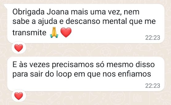 A tua jornada de volta à clareza não precisa de ser solitária - estou aqui para te acompanhar com leveza e verdade. 🤍