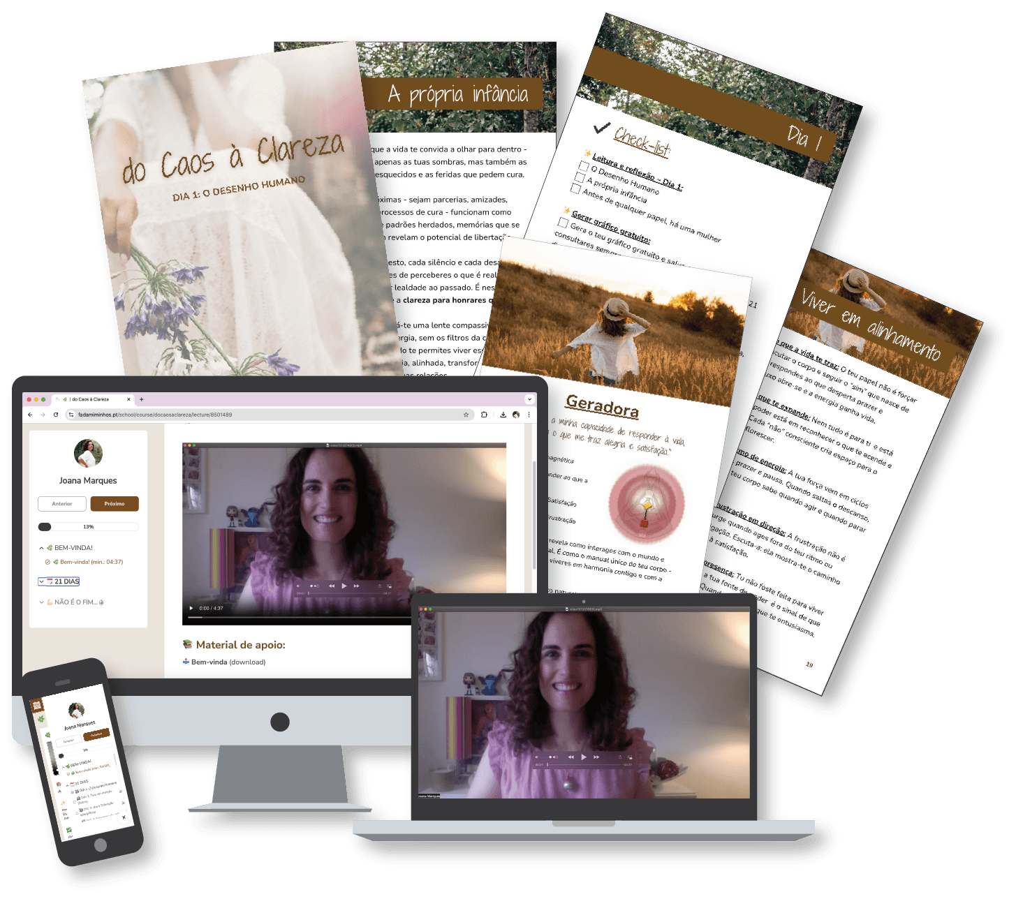 Durante 21 dias, com aulas curtas e práticas, vais aprender o passo a passo de como usar o teu Desenho Humano no dia a dia.
